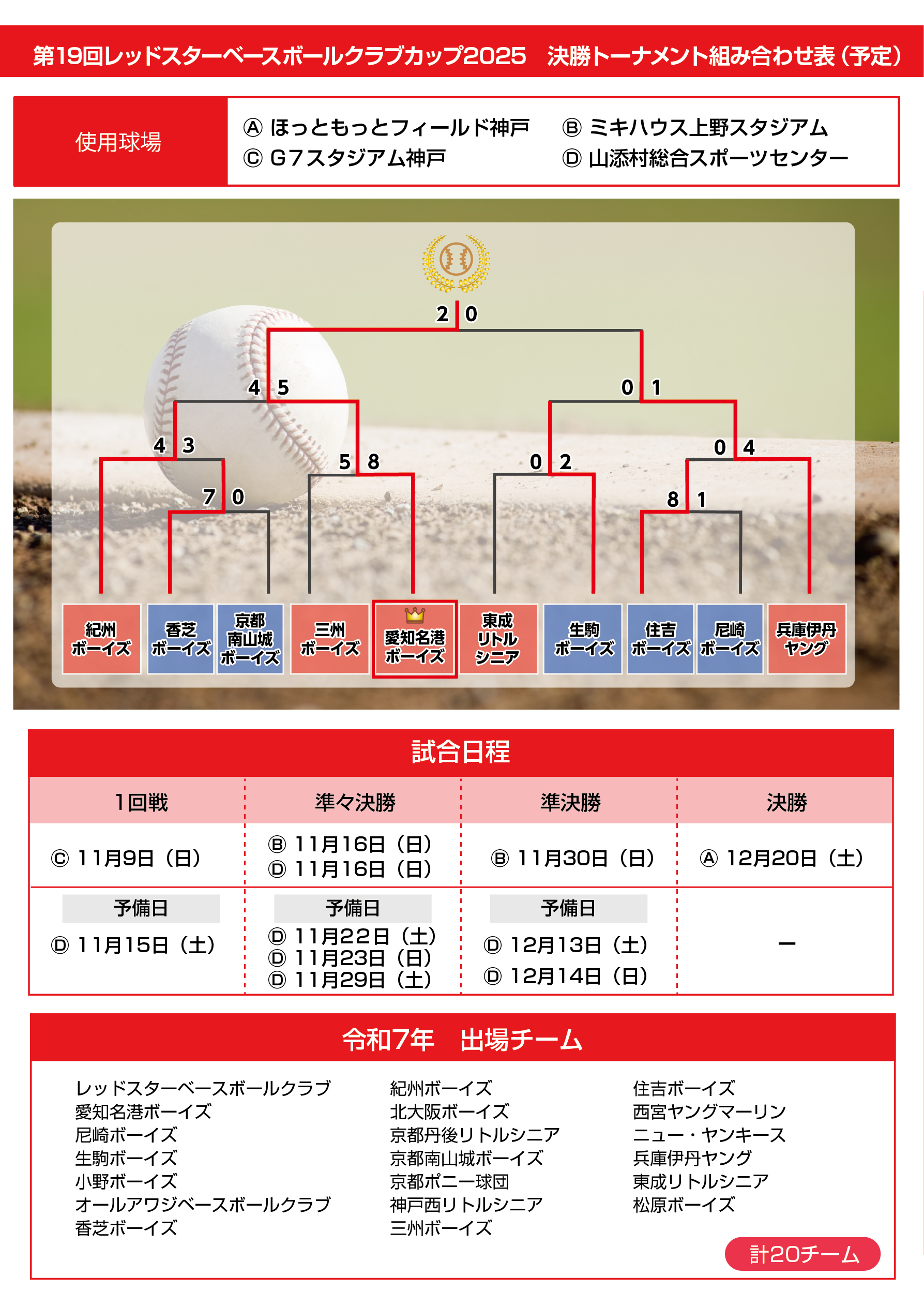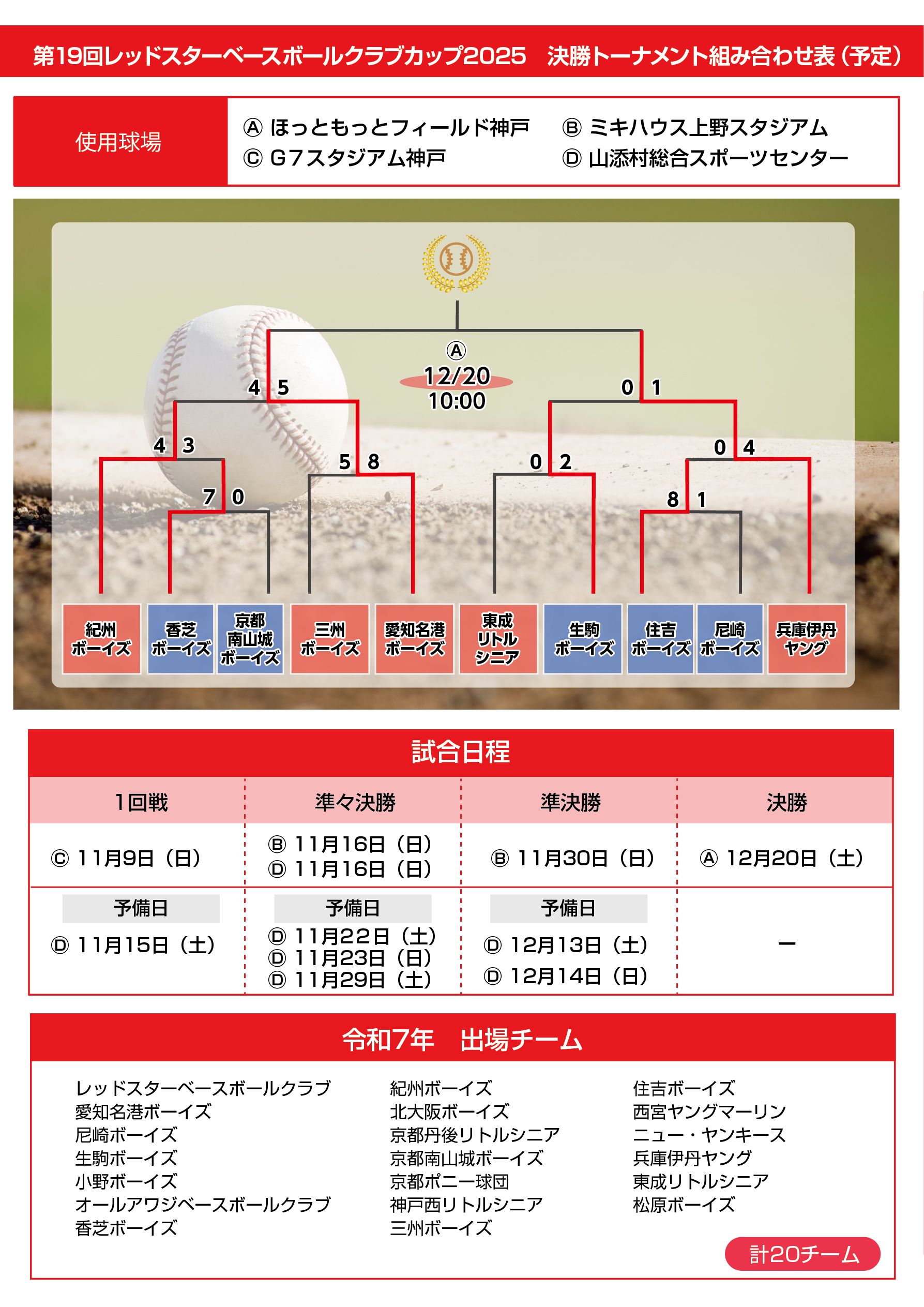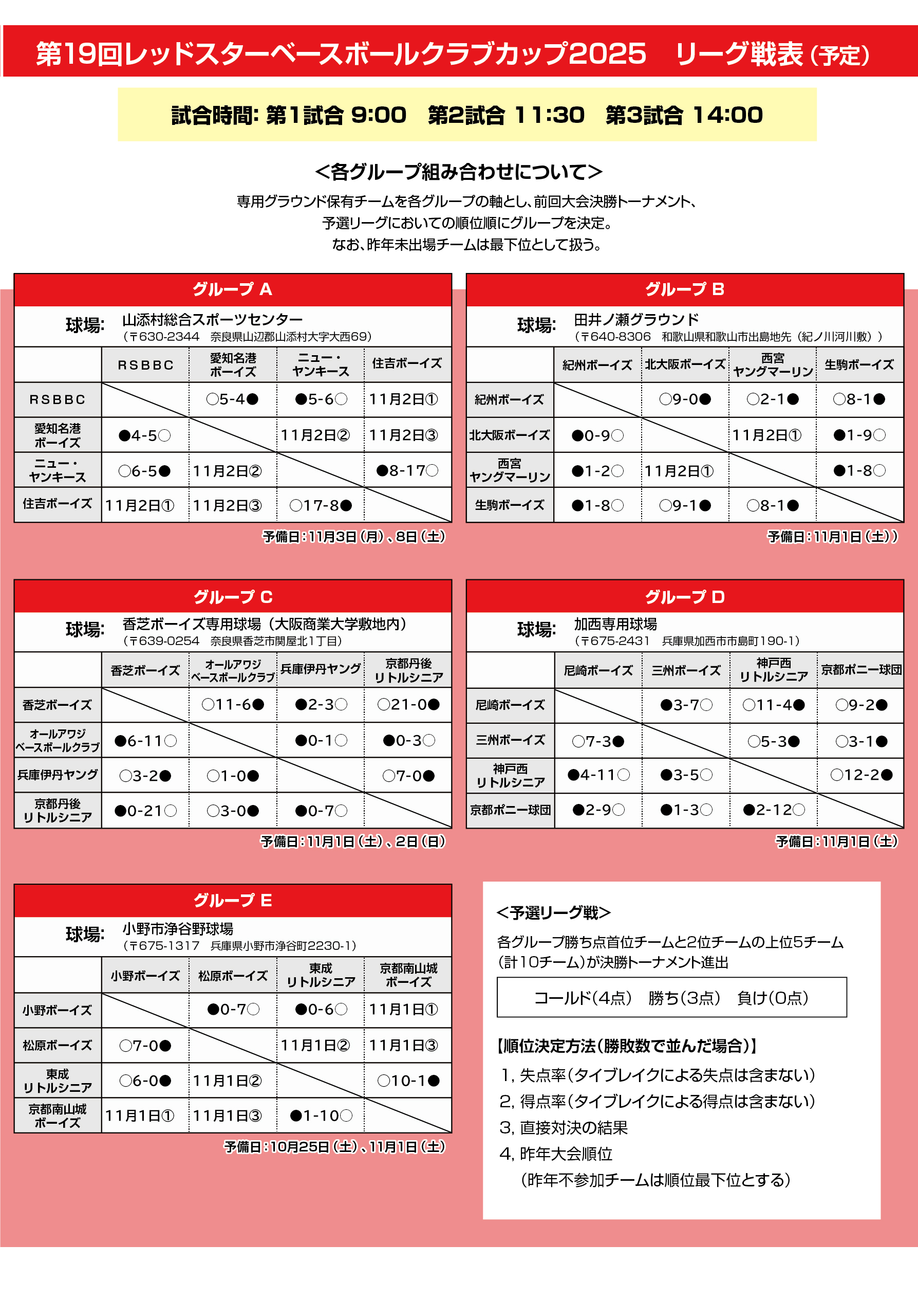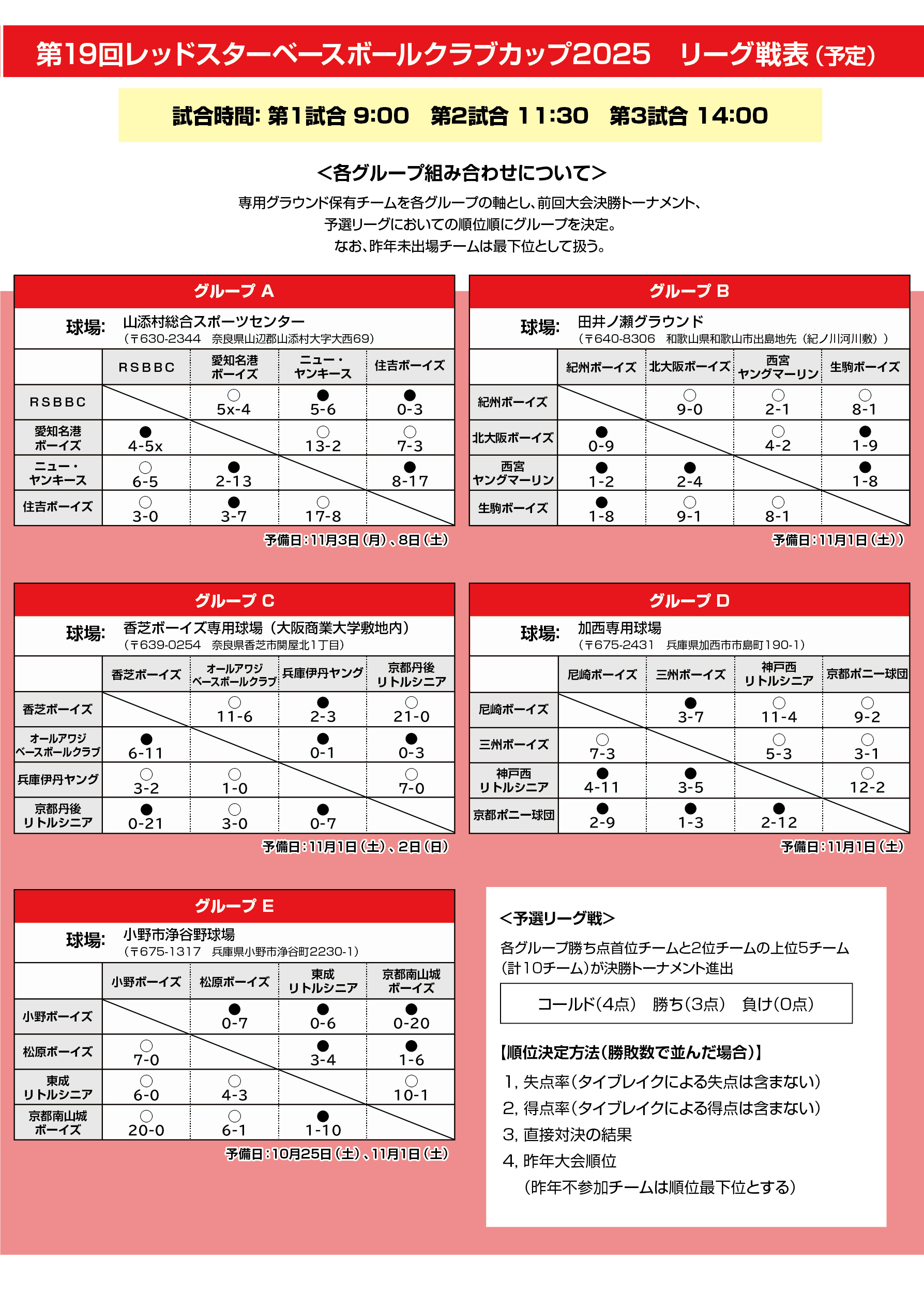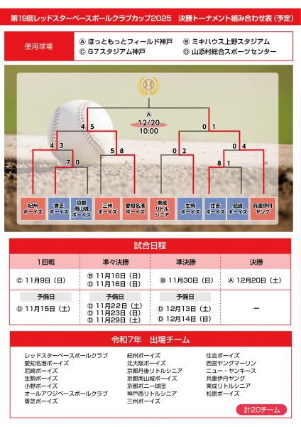 2025年大会 レッドスターベースボールクラブカップ リーグ戦・決勝トーナメント表